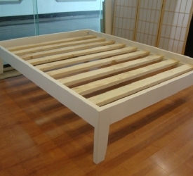 Simple and functional double bed with a tapered legs. Painted in antique white USA. Available in the raw or choose from our range of stained and painted finishes.
